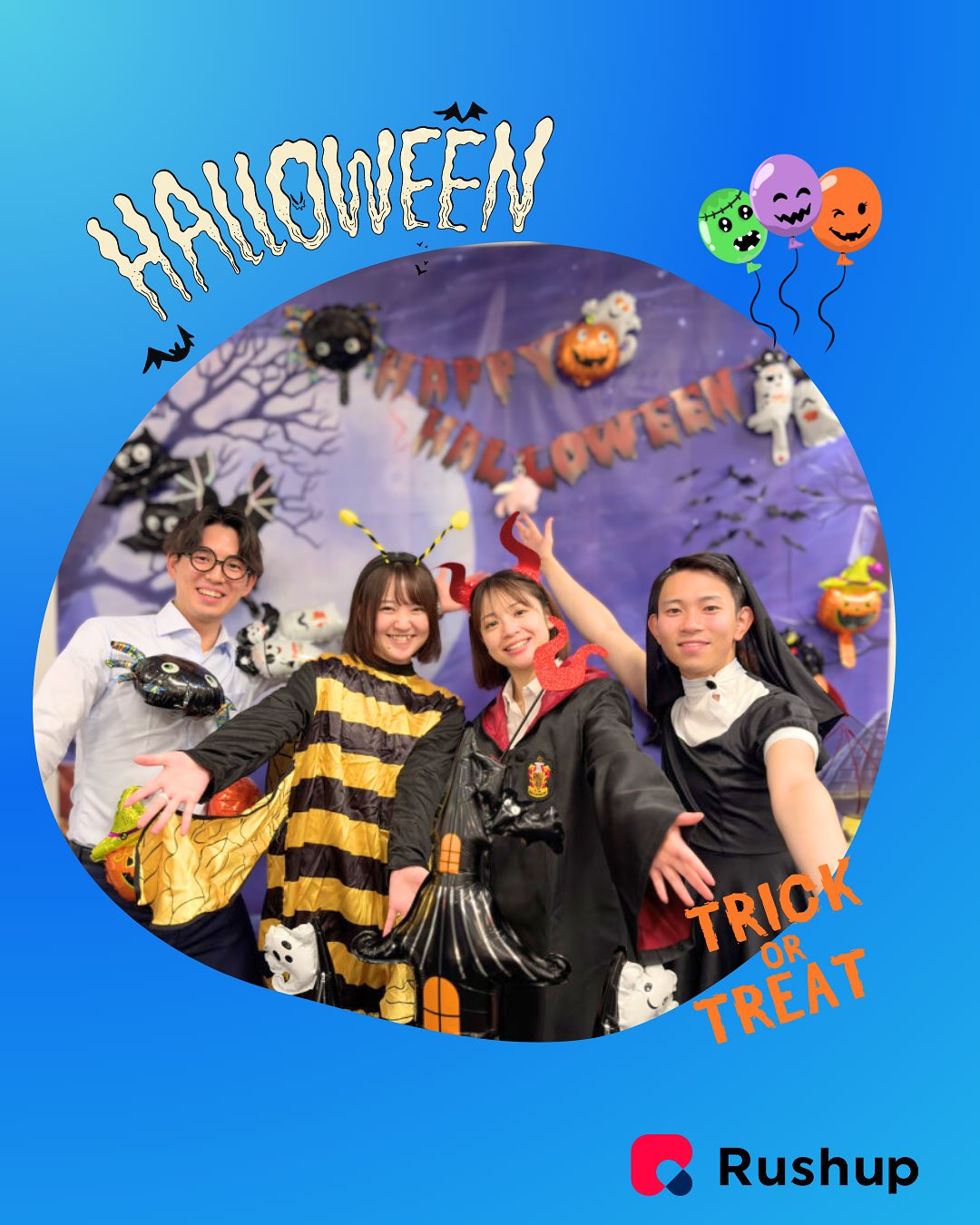 社内に“エイリアンやハリーポッターが出現!?👀 社内に“エイリアンやハリーポッターが出現!?👀先日、社内でハロウィンパーティーを開催しました🎉仮装がぴったりすぎて違和感もない方も🤭(笑)笑顔あふれるRushupのハロウィンでした🎃来年はあなたとハロ…